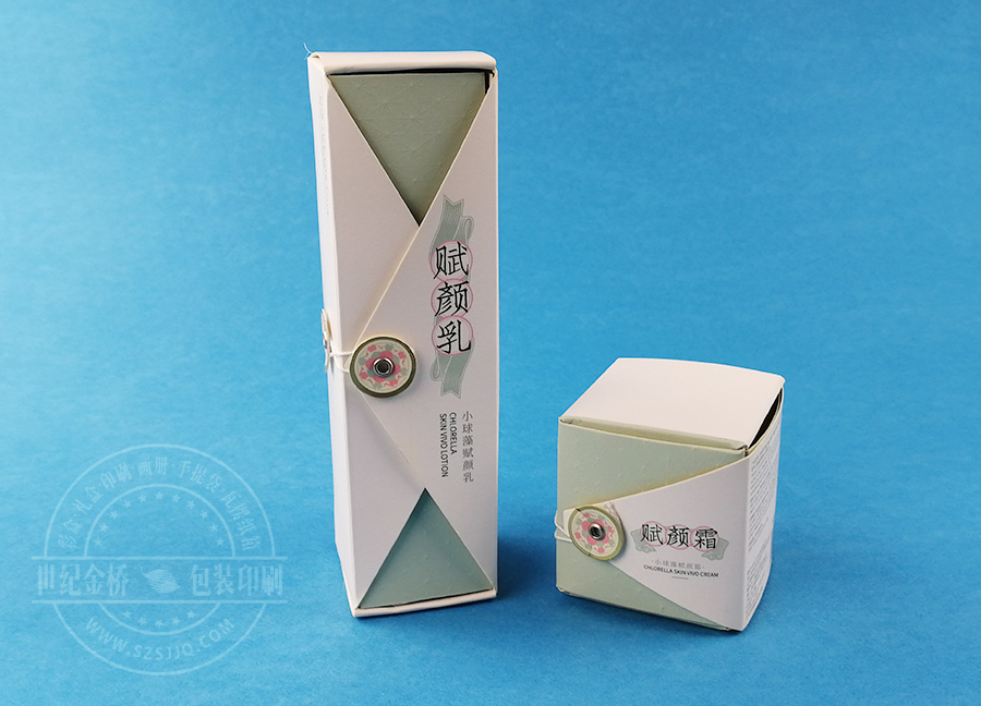 護膚品禮盒套裝賦顏乳,我們申請專利了紐扣式開關,客戶很喜歡,類似旗袍紐扣的形式,與產品特性非常吻合。民國風十足,令人產生聯想,具有很強的購買吸引力。結構設計巧妙,成本低廉,是一套很有代表性的護膚套裝卡盒。