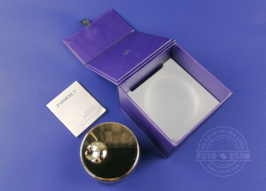 這是為法伯麗琉璃時(shí)光霜定制的精品包裝盒,精致小巧的書型盒結(jié)構(gòu),通體藍(lán)色配單純LOGO,燙銀,一種純粹的味道通過禮盒包裝體現(xiàn)出來(lái)。內(nèi)部卡托用卡紙折疊形式做成支架。產(chǎn)品蓋和內(nèi)托金色顏色統(tǒng)一整體,產(chǎn)品設(shè)計(jì)巧妙,工藝精湛,完美的表達(dá)了產(chǎn)品的風(fēng)格和造型。