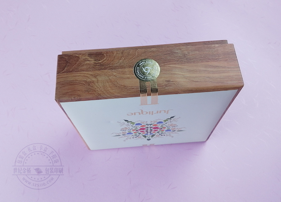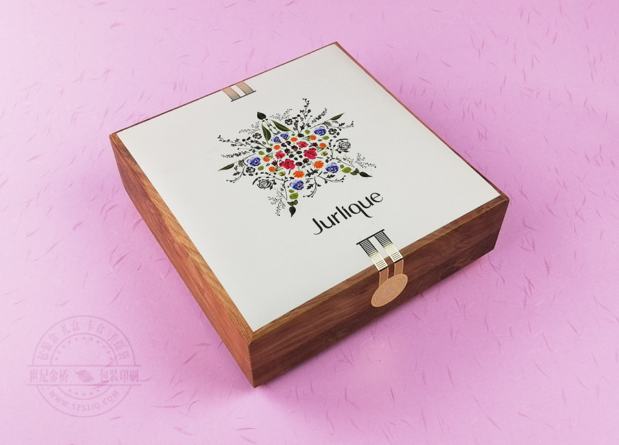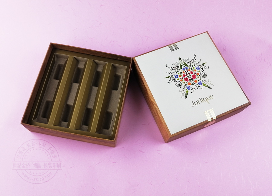 茱莉蔻(Jurlique)品牌合作的護膚系列禮盒包裝,選用4色印刷在特種紙上,木紋圖案印在特種紙紋上,突出木紋效果,逼真手感,logo燙金,金木兩種不同質感搭配,體現獨特品味。內襯以木漿紙和卡紙配合組成適合產品的卡托,品質細膩。