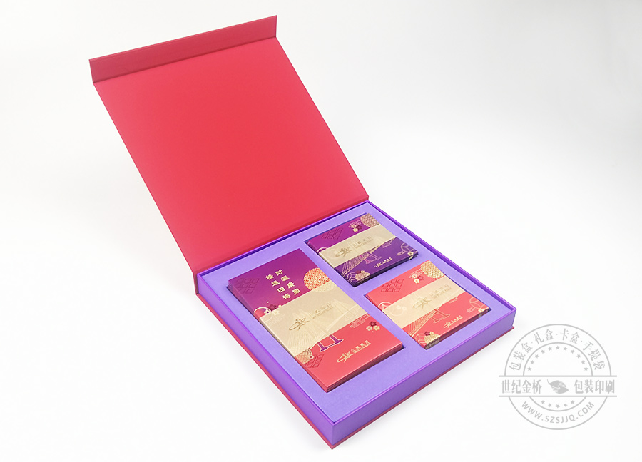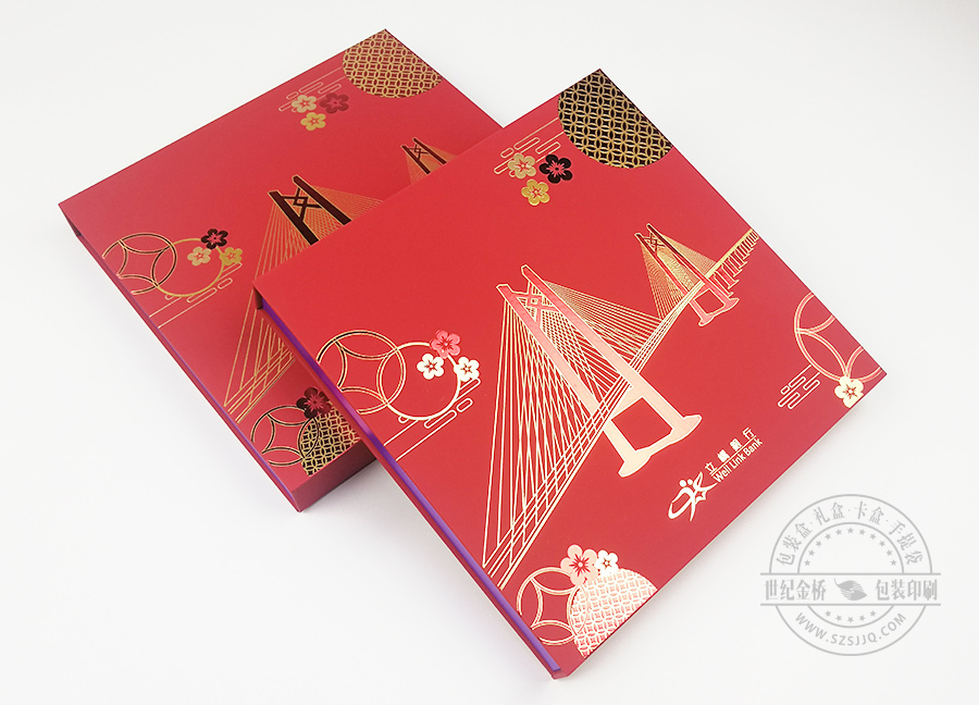 澳門立橋銀行,年底的年產品禮盒及利是封是我們多年的合作產品。禮盒以書型盒的形式,用觸感紙生產,有獨特的手感,色彩也非常艷麗,燙黃金和紅金的效果搭配,很時尚很高檔,內托EVA。利是封用的珠光紙,印刷色彩反光發亮,硫酸紙作為鋪墊,起到了制造神秘的儀式感效果。