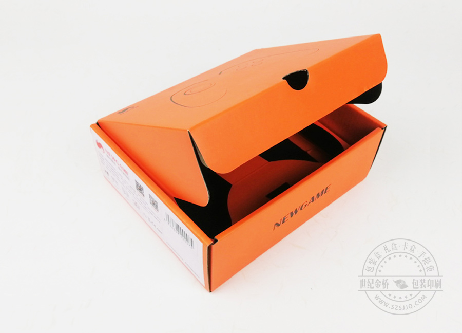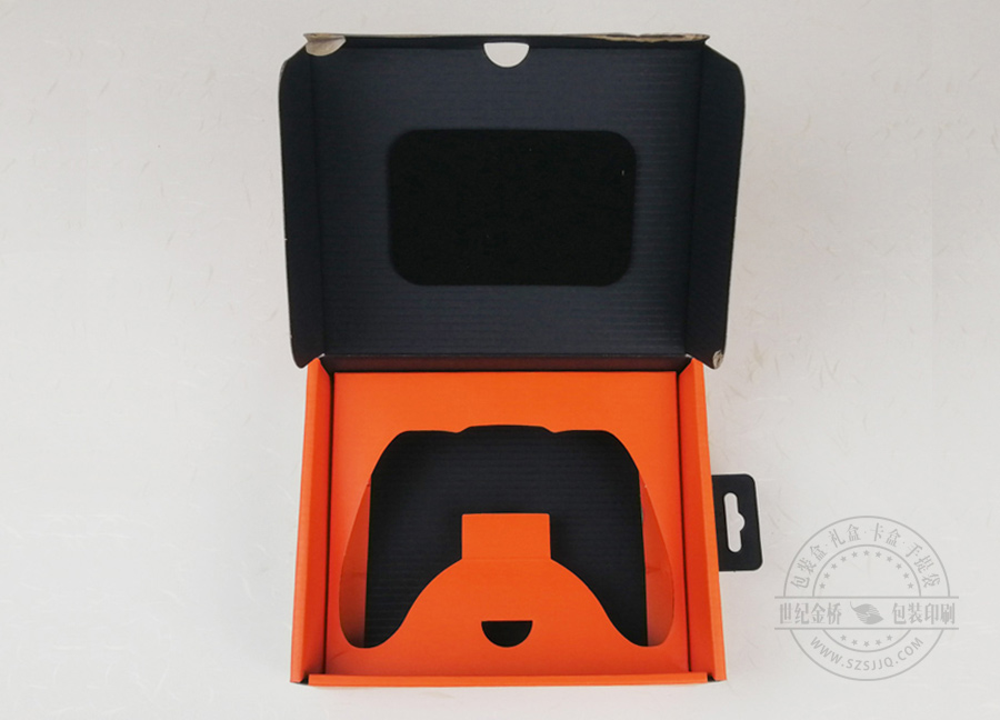 數碼游戲手柄瓦楞紙盒,外盒內盒內托一體成型,減少了人工后道加工的成本,這種生產需要比較大型的機器,展開可以平鋪,對于外貿貨運來說,有巨大的物流優勢,坑紙外裱單面灰板,沖型便會成型,材料和加工都較為簡單,做大件商品的包裝盒較為合適。